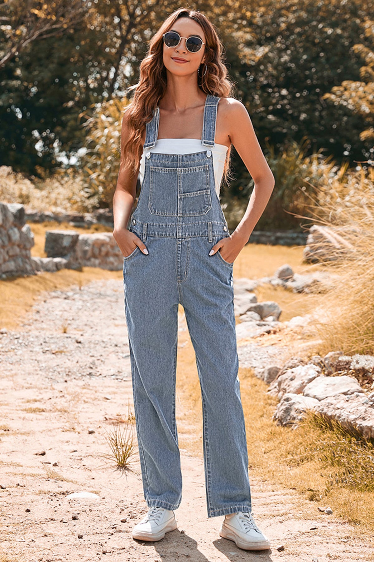Embrace relaxed confidence and retro charm with the Light Blue Retro Bib Pocket Buckle Straps Casual Denim Jumpsuit — a wardrobe staple designed for effortless, everyday style.