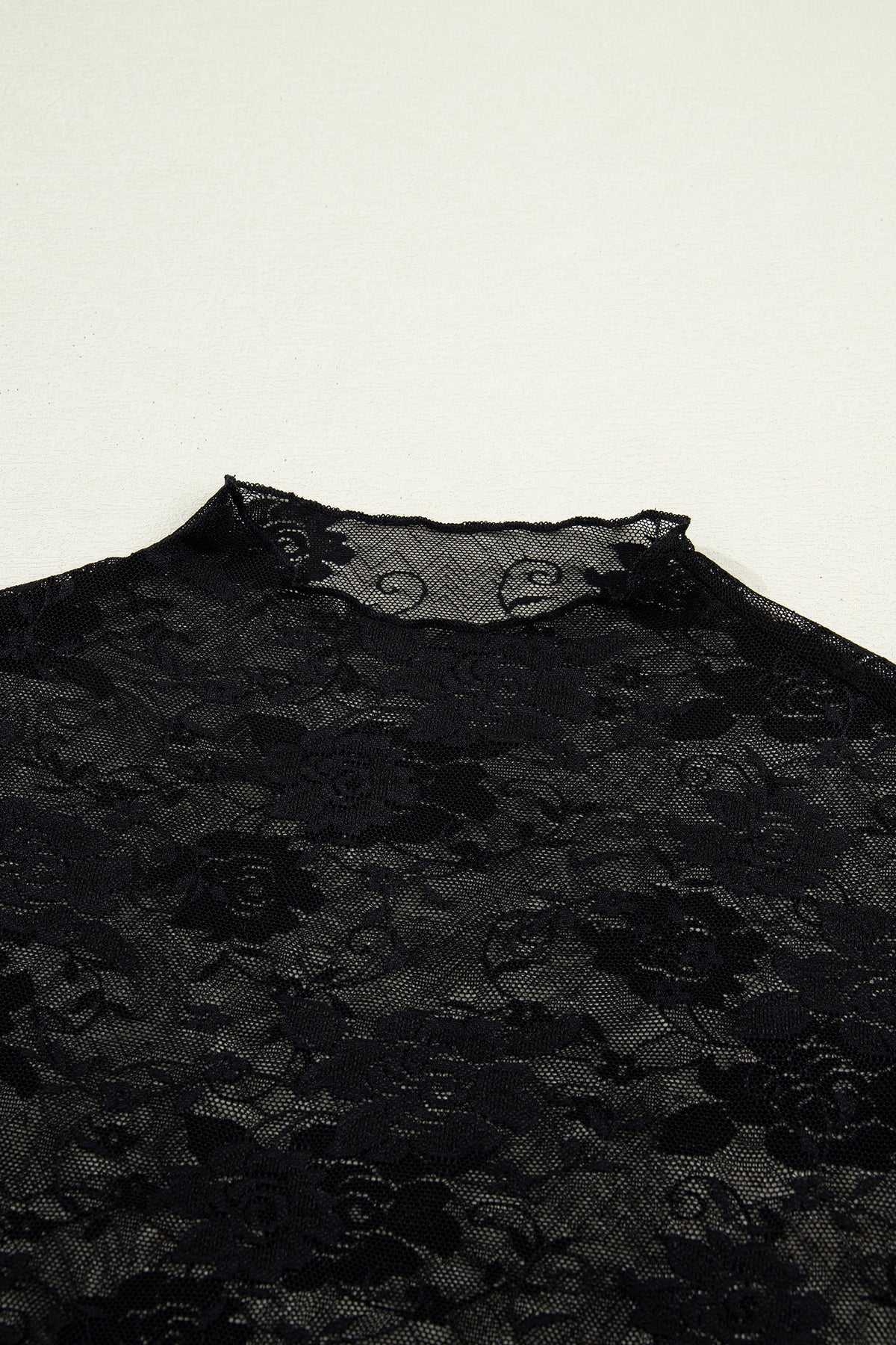 Turn up the allure with the Black Floral Lace Mesh Short Sleeve Sheer Top, a statement piece designed to exude confidence and feminine elegance. Featuring delicate floral lace detailing layered over sheer mesh, this top creates a beautifully romantic yet bold silhouette. The short sleeves add balance and versatility, while the lightweight fabric offers a flattering, breathable fit. Perfect for styling up or down, this sheer lace piece instantly elevates any outfit with a touch of sophistication and edge.