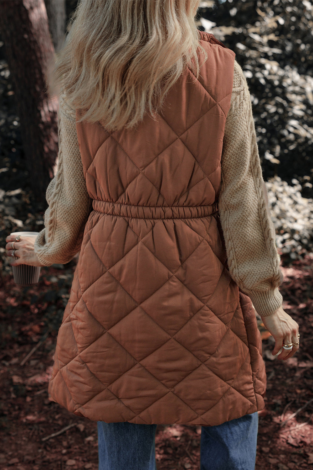 Coffee Longline Quilted Stand Collar Puffer Vest